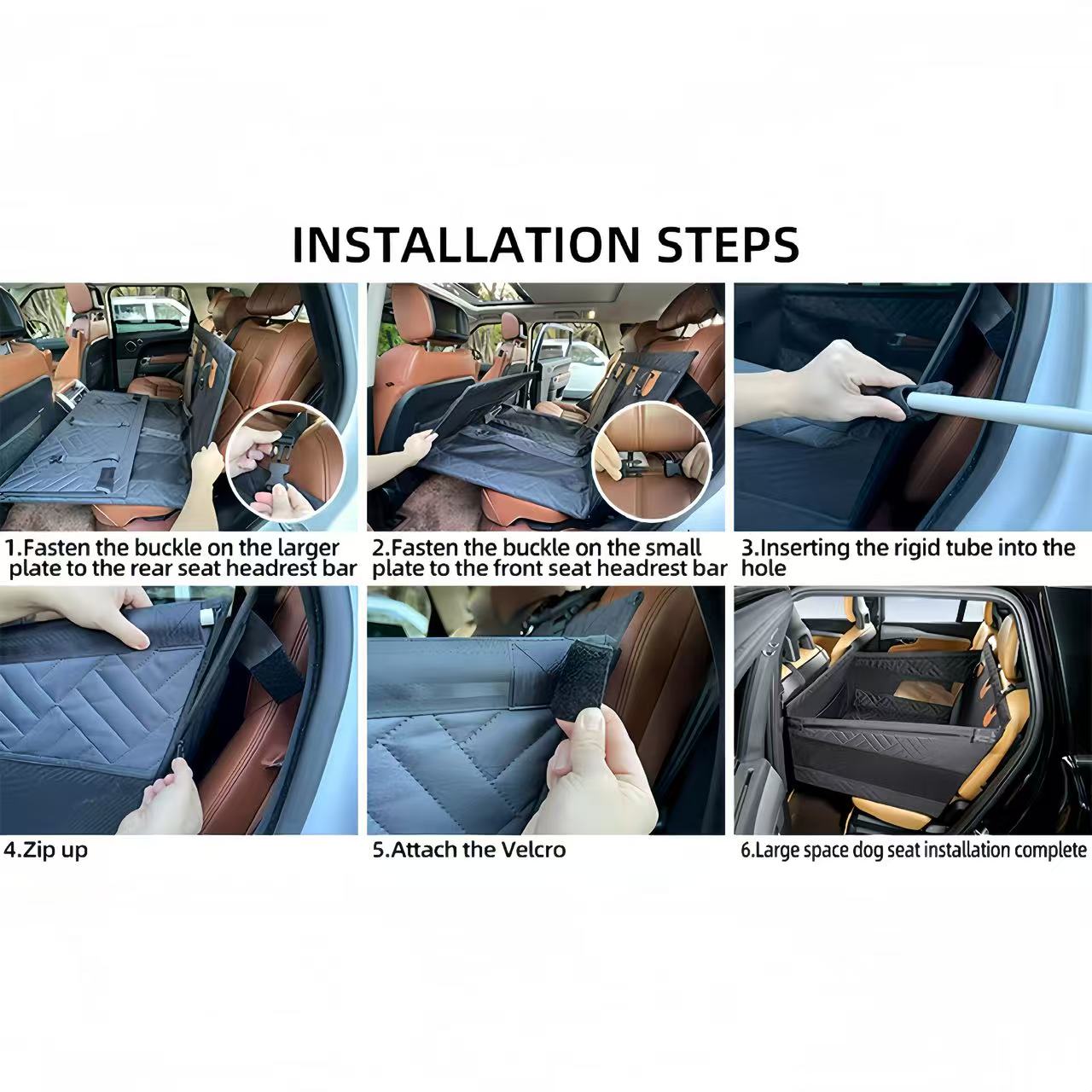 Tired of your pup hogging the whole backseat? This compact rear seat gives them a steady, cozy spot—andleaves room for you to sit too.No more sliding, scratches, or messy fur: it locks your pup in and shields your car.